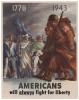 To promote patriotism during World War II, the Office of War Information, a federal agency, commissioned artists to create propaganda posters. This one, by the painter Bernard Perlin, associates soldiers of 1943 with troops of the Continental Army that endured the harsh winter of 1777-1778 at Valley Forge during the Revolutionary War.