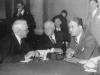 Senator James J. Couzens of Michigan (left), a member of the Senate Committee on Banking and Currency, conferred with its chairman, Senator Duncan Fletcher of Florida (center), and the committee counsel, Ferdinand Pecora (right). Fletcher succeeded Senator Peter Norbeck of South Dakota as chairman, but it was Pecora who became the investigation’s driving force.