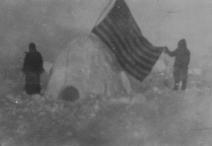 Commander Robert Peary’s sledge party posing with flags at the North Pole, photograph, April 7, 1909