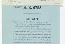 H.R. 6758, An Act to provide a penalty for violation of restrictions . . . with respect to person . . . in military areas or zones, March 20, 1942