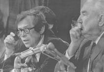 Senator Howard Baker Jr. and Senator Sam Ervin at Watergate hearing, photograph, n.d.