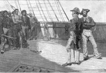 “Impressment of American Seamen”, wood engraving after a drawing by Howard Pyle, Harper’s Monthly, April 1884