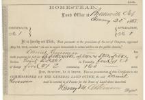 Homesteading Certificate of eligibility for Daniel Freeman, January 20, 1868
