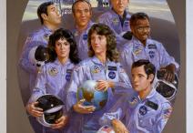 Painting of Challenger Crew, Brumidi Corridors, U.S. Capitol, by Charles Schmidt, 1987