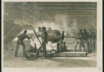Wood engraving, interior of the Merrimac during combat with the Monitor, Le Monde Illustré, ca. 1862–1865