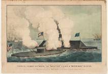 Hand-colored lithograph, “Terrific combat between the ‘Monitor’…& ‘Merrimac,’” New York: Currier & Ives, 1862