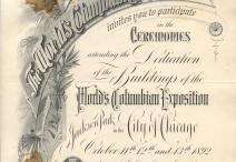 Official invitation to the ceremonies dedicating the buildings of the World's Columbian Exposition, sent to Frederick Douglass