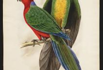 Ornithology plate printer's proof of parrots, by Titian Peale, hand-colored engraving by T. House, Boston