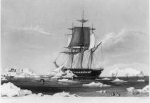 VINCENNES in Disappointment Bay, 1844 engraving by C.A. Jewett, sketch by Charles Wilkes
