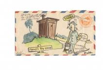 Three envelopes with watercolor drawings, by Sergeant Samuel Lionel Boylston in the South Pacific, 1944