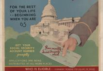 U.S. Social Security Board Poster, A Monthly Check to You for the Rest of Your Life . . . Beginning When You Are 65, Lithograph Print, 1935.