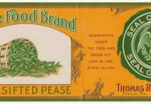 Pure Food Brand Garden Grown Sifted Pease food label, ca. 1906