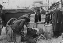U.S. Marshal destroying worm-infested currants and raisins seized in Washington, D.C., bakeries, photograph, November 20, 1909