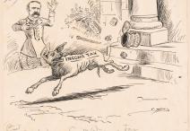 Exit! Income taxes, drawing by George Yost Coffin, 1895