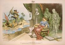 “A Plea for Cuba,” color lithograph by Victor F. Gillam, Judge, October 19, 1895