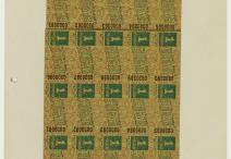 Printed sample of one-pound sugar rationing coupons issued by the Office of Price Administration, Arcus Ticket Company, ca. 1942