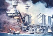 U.S. Navy Sailors Rescue a Survivor alongside the Sunken Battleship USS West Virginia, photograph, December 7, 1941