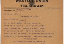 Telegram from Heinrich Charles, Secretary, Chamber of German American Commerce, to Representative Henry D. Flood of Virginia, January 4, 1915