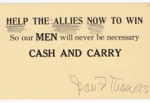 Postcard from Mrs. M. Carew to Representative Sol Bloom of New York, November 2, 1939