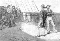 Impressment of American Seamen, wood engraving after Howard Pyle, April 1884