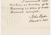 President John Tyler’s second message nominating Caleb Cushing as Secretary of the Treasury, March 3, 1843