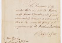 Message from President George Washington requesting that the Senate meet to advise him on . . . the treaty . . . with the Southern Indians, August 21, 1789