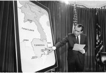 President Richard Nixon Points to a Map of Cambodia during a Vietnam War Press Conference, photograph by Jack E. Kighlinger, April 30, 1970