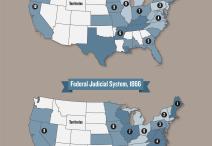 “Federal Judicial System,” 1863 and 1866, adapted from maps by Cynthia Harrison and Deirdre Golash, Creating the Federal Judicial System, 2005