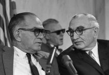 Senator William Fulbright of Arkansas (left) with Senator Wayne Morse of Oregon during a Senate Foreign Relations Committee Hearing . . ., photograph by Warren K. Leffler, 1966
