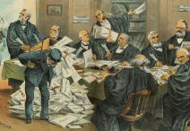 “An Overworked Supreme Court,” chromolithograph by Joseph F. Keppler, Puck, December 9, 1885