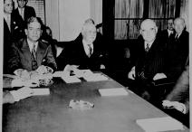 Ferdinand Pecora, Senator Duncan Fletcher, and John Pierpont Morgan Jr., photograph, n.d.