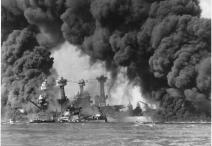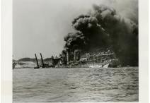 Battleships USS West Virginia and USS Tennessee, photograph, December 7, 1941