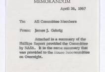Memorandum to all committee members from James J. Gehrig, April 26, 1967 Summary of the Phillips Report, April 15, 1967