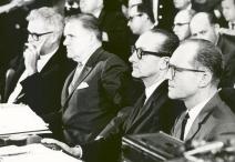 National Aeronautics and Space Administration officials before the Senate Committee on Aeronautical and Space Sciences, photograph, May 9, 1967